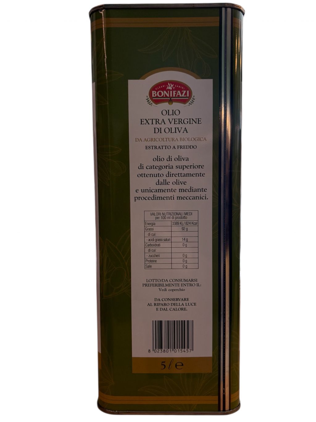 Conservare alla temperatura compresa tra 10 e 20 gradi, lontano da fonti di calore e luce solare. Servire con oliera in acciaio.